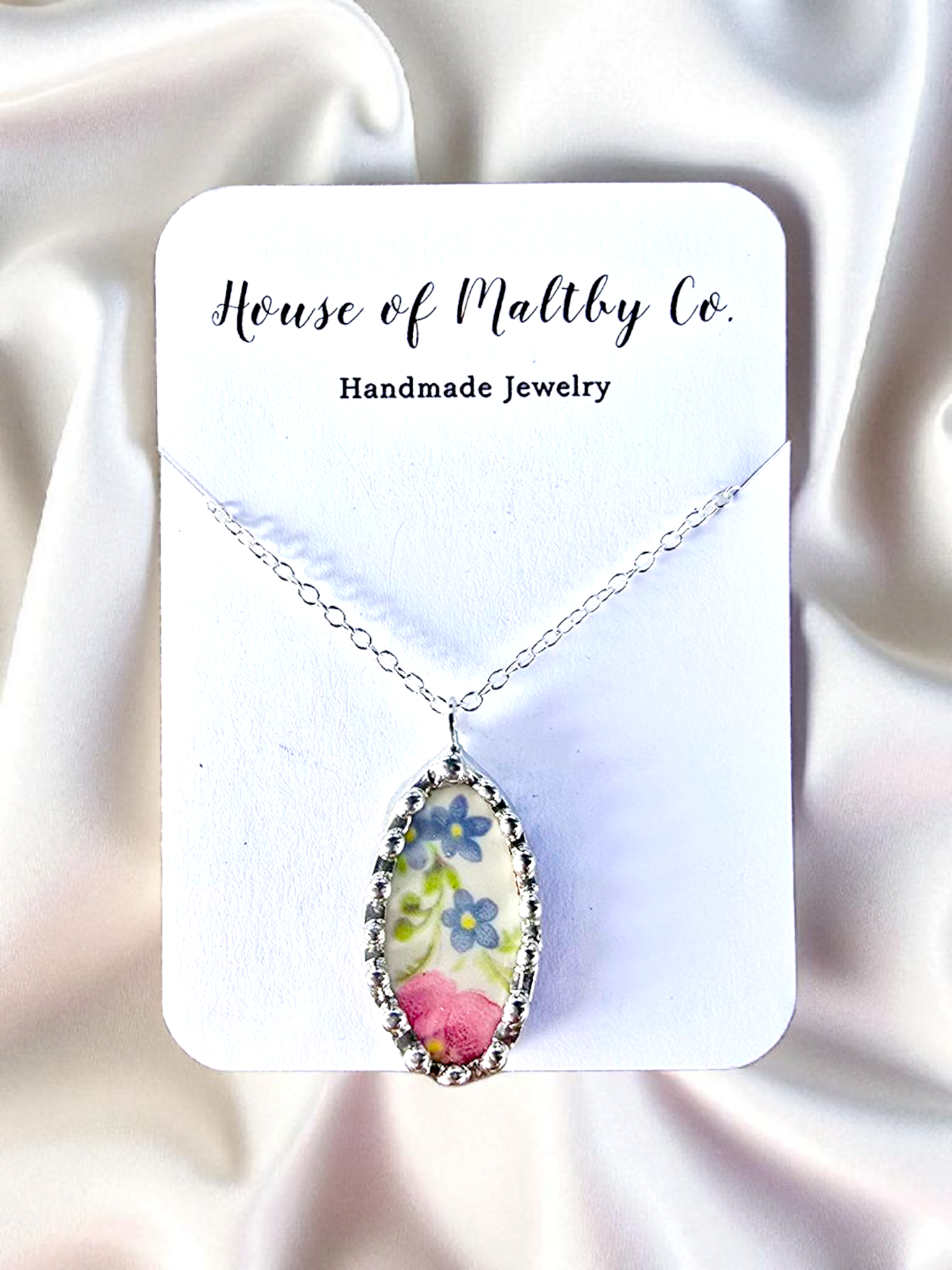 Pale Pink and Blue Oval Diasy Necklace