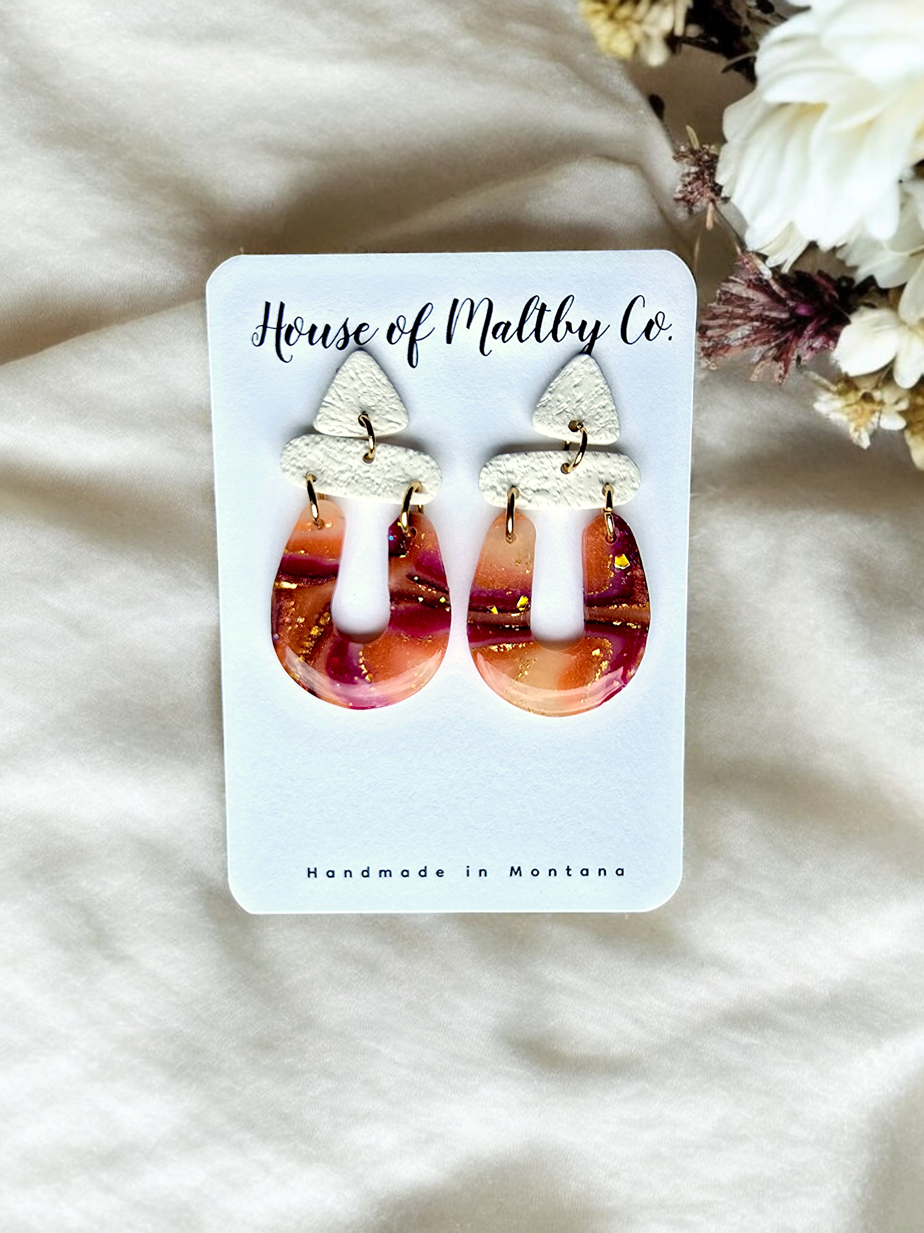 Polymer clay earrings are amazingly light weight and will not pull on your earlobes which is always ideal for longer earrings. These earrings are made for pierced ears and are secured by metal earring backs.
