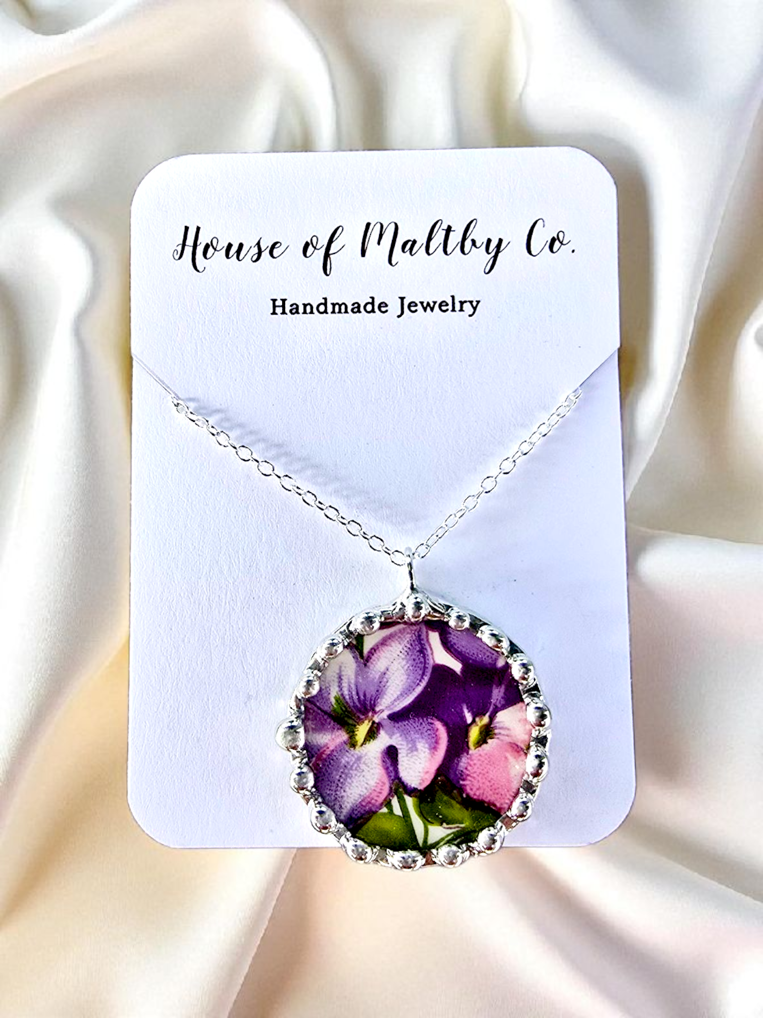 This piece is 1.5 inches in diameter with a scalloped edge. The pendant is on an 18 inch fine silver chain.