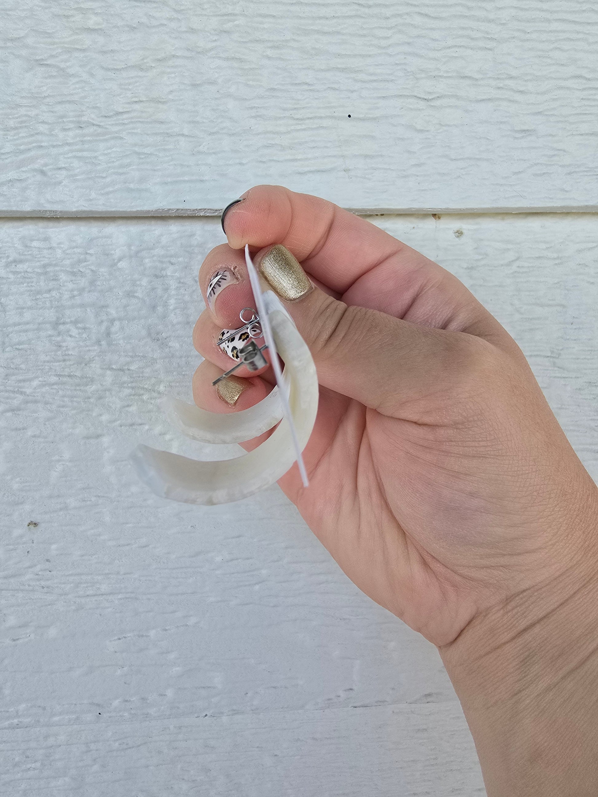 These huggies are made from polymer clay creating a Faux White Pearl Agate, featuring a nickel-free metal earring back and a UV resin top coat over the clay.